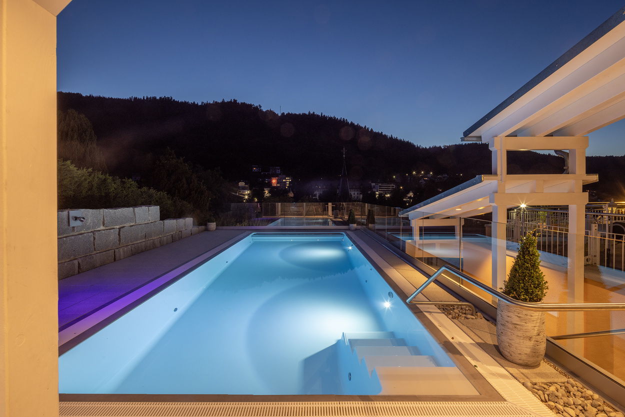 Ein besonderes Highlight von Mai bis Oktober ist unser Infinity Außenpool (10m x 5m) mit einmaliger Sicht auf Bad Wildbad.