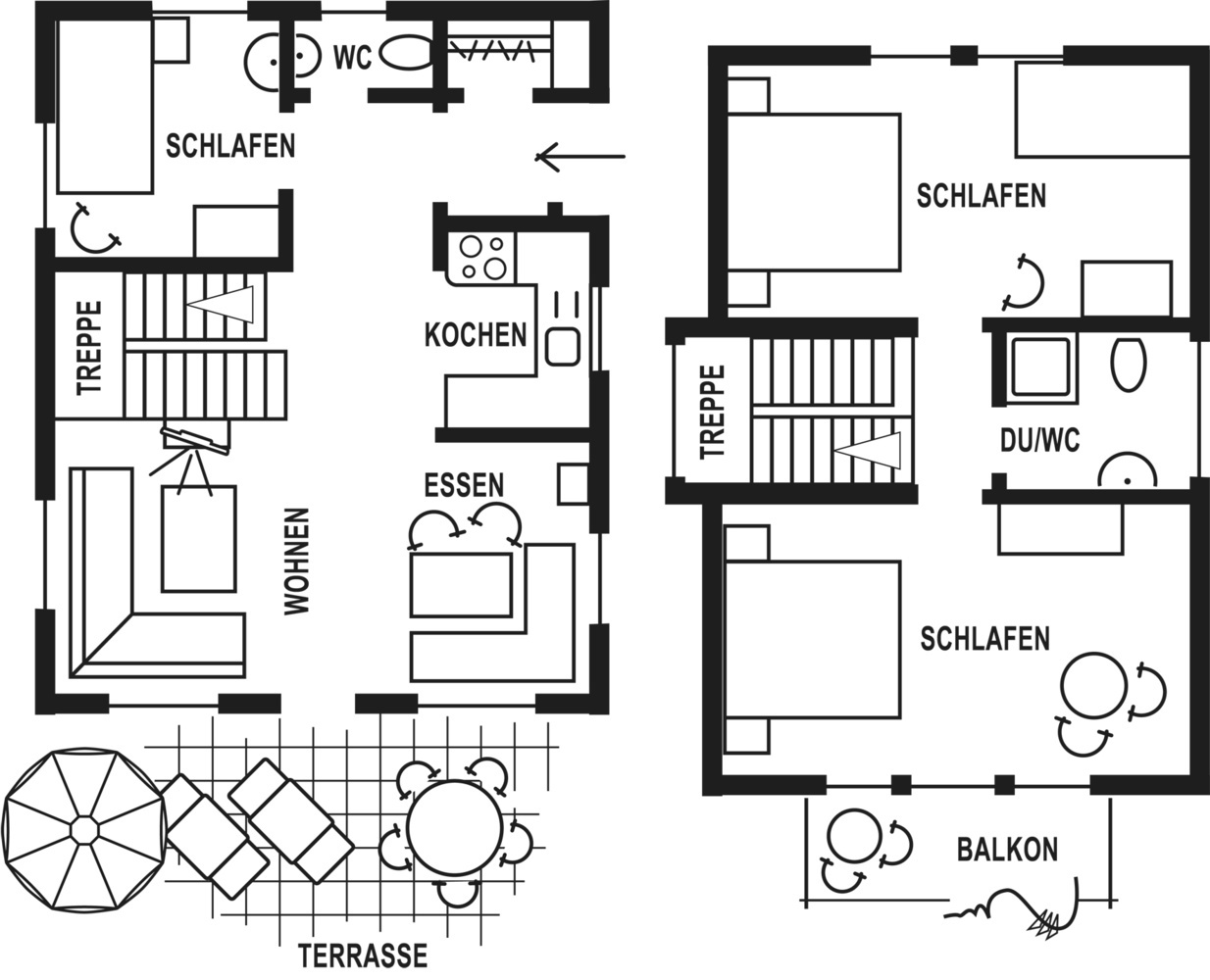 Beide Häuser verfügen über einen Balkon und eine große, möblierte Terrasse, WLAN und SAT-TV.