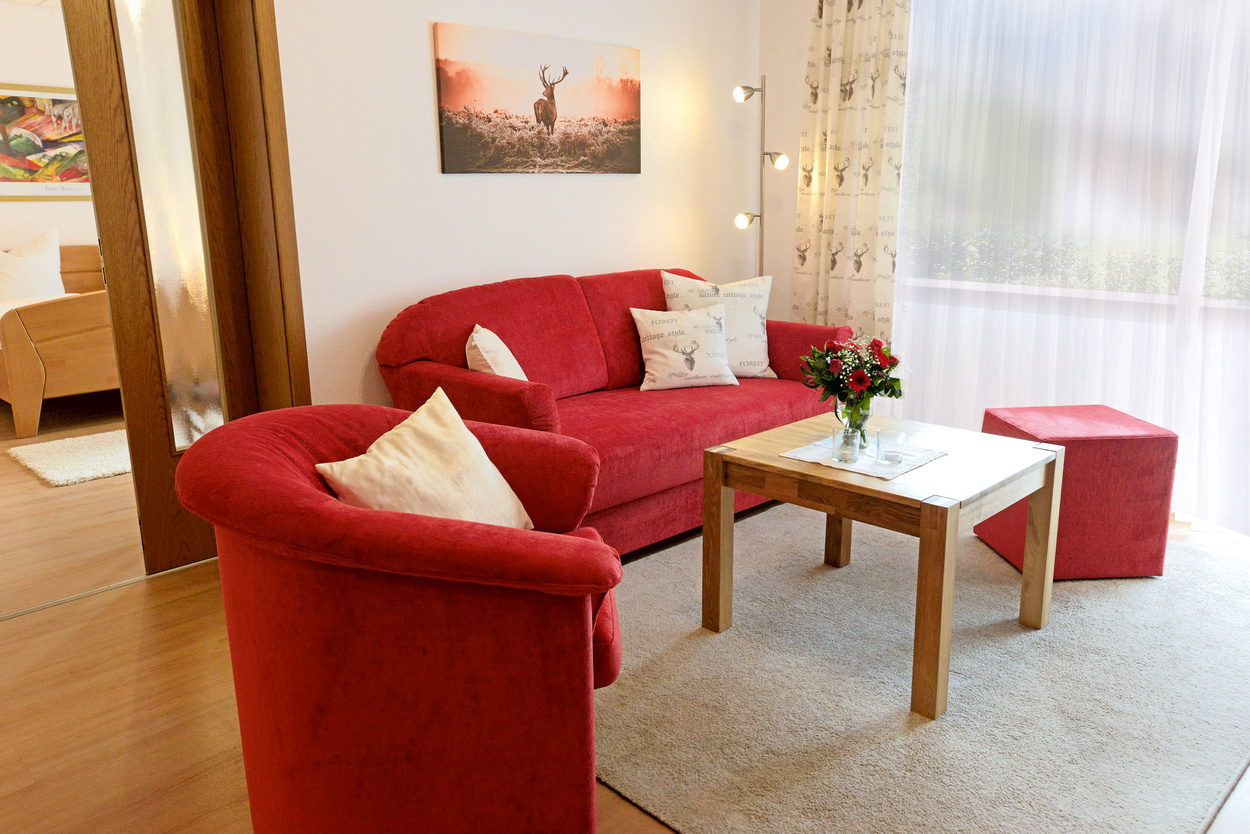 FerienwohnungenUnsere komfortabel eingerichteten, geräumigen Ferienwohnungen verfügen alle über ein Wohnzimmer, ein Schlafzimmer, eine Küche, ein Badezimmer, einen Balkon sowie WLAN und Kabel-TV. Die Nutzung des Fitnessraums und der Gästewaschküche sind inklusive. Es gibt 5 Wohnungen, die zwischen 50 qm und 70 qm groß sind und Platz für 2 bis 4 Personen bieten.