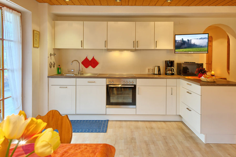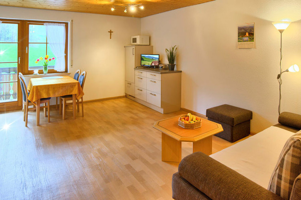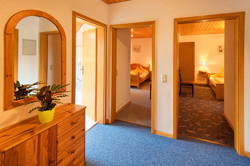 Im Inneren unseres Ferienhauses befinden sich 4 wunderschöne, komfortabel ausgestattete Ferienwohnungen. Morgens sorgt der Ausblick ins Grüne für einen guten Start in den Tag und Abends sitzt man gerne bei einem Schnaps aus der hauseigenen Brennerei zusammen.