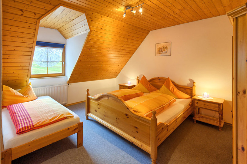 In den komfortablen 4*-Wohnungen des Bauernhofs fühlen sich Groß und Klein wohl: zwischen Wiesen und Wäldern in ruhiger Lage entspannen, sich in der Sauna regenerieren, im Badeteich planschen u.v.m.zum Bauernhof