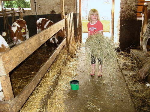 Der Bauernhof ist besonders bei den Kleinen ein Hit. Die vielen Tiere, darunter Mutterkühe und Mastrinder, Ziegen, Katzen und Hasen müssen täglich versorgt werden. Beim Füttern und Kälber tränken kann gerne tatkräftig mitgeholfen werden. Der große Spielplatz mit großer Spielwiese bietet viele Möglichkeiten sich auszutoben. Auf dem Freisitz ist es möglich zu Grillen und die Ruhe zu genießen, denn hier herrscht kein Durchgangsverkehr.