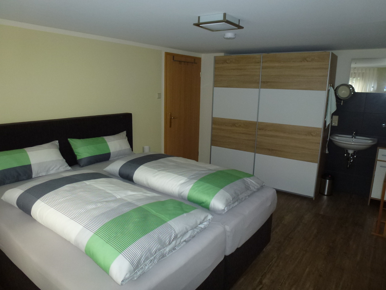 Der Wohn-/ Essbereich ist mit Massivholzmöbel eingerichtet. Für die Freizeit und gesellige Abende zuhause, stehen ihnen Gesellschaftsspiele, ein Tischkicker, Tisch-Tennis und eine Dartscheibe zur Verfügung. Die Ferienwohnung verfügt über 2 Schlafzimmer mit Boxspringbetten. Für Familien mit kleinen Kindern stehen Babybetten, Kinderbetten, ein Wickeltisch, Baby-Badewanne, Babyphone und 2 Hochstühle auf Anfrage zur Verfügung.
