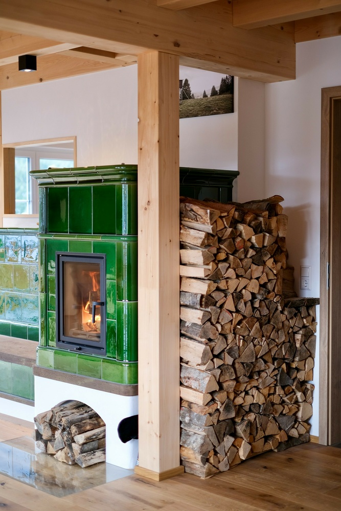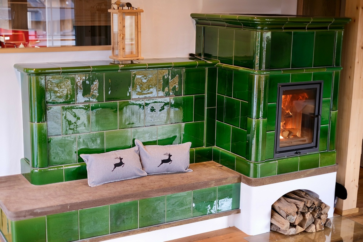 Zum Verweilen lädt das Wohnzimmer mit Eckbank, TV Sitzecke mit Ledersofa und 50“ Flat TV ein. Ein offener Kamin mit Kachelofen und Steinbank sorgen für mollige Wärme an den kälteren Tagen.