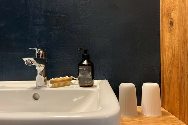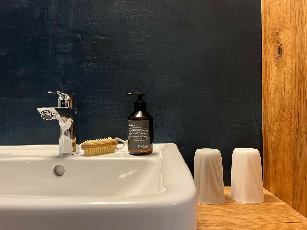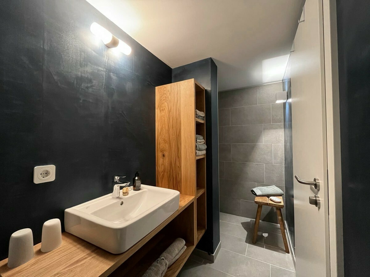 • Badezimmer: großzügige ebenerdige begehbare Dusche, Waschtisch, WC, Handtuchheizung, Haartrockner, kostenlose Pflegeprodukte, Toilettenpapier.