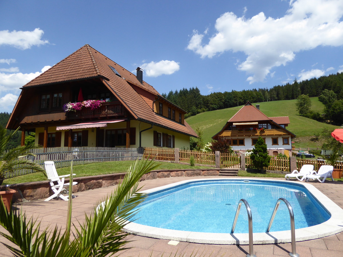 Typischer Schwarzwälder Einzelhof in einem idyllischen ruhigen Seitental, auf einer sonnigen Anhöhe liegend umgeben von Wiesen und Weiden, mit einem herrlichen Ausblick ins Tal und über die Wälder.