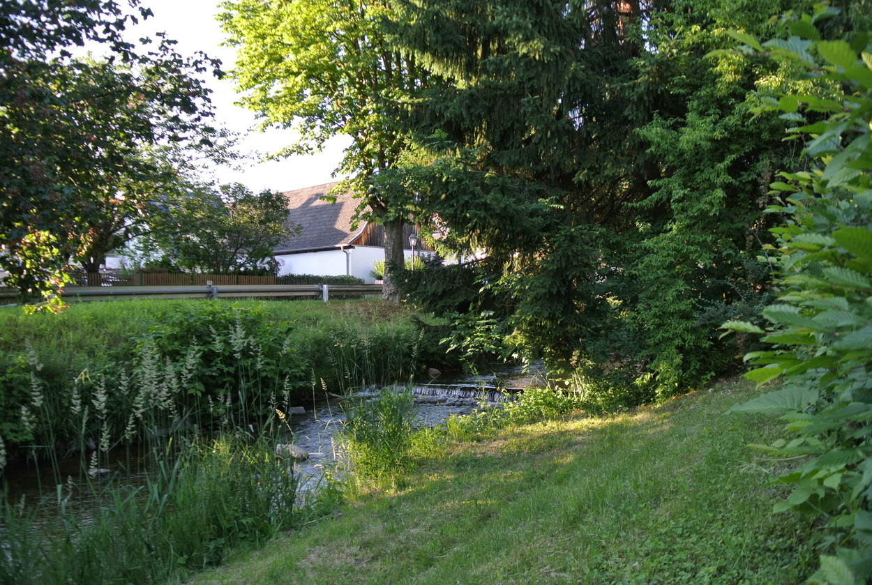 Das Appartementhaus ist auf einem großzügigen Grundstück gebaut, liegt abseits der Straße und dennoch in der Ortsmitte. Hier verbinden sich dörfliches Leben mit ländlicher Idylle. Vom Hochblauen 1165 m üNN herkommend begrenzt der Klemmbach plätschernd einen Teil des Gartens.