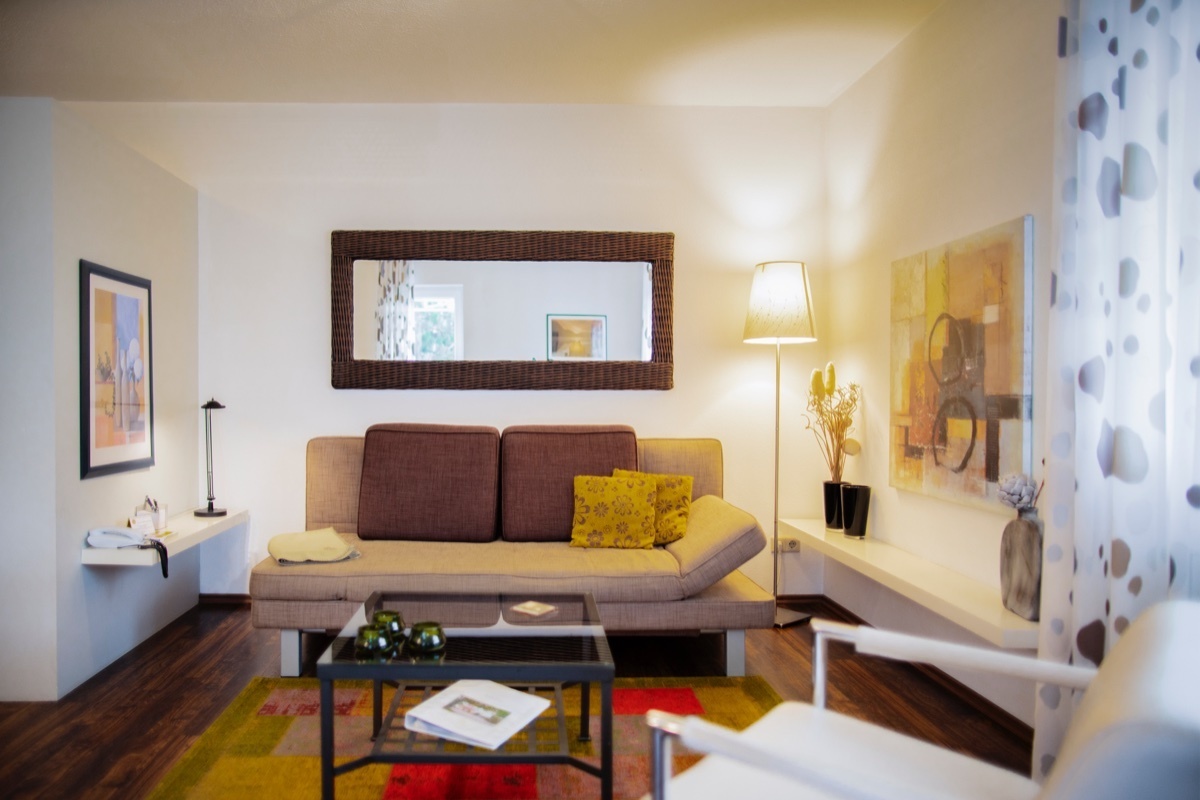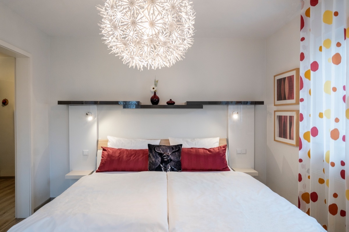 Die Appartements sind großzügig geschnitten, jeweils ca. 49 qm groß und aufgeteilt in beispielsweise:Schlafzimmer mit Doppelbett, Wohnraum mit integrierter Küche und Essbereich, Duschbad/WC sowie großem Balkon. Alle Wohnungen sind mit Direktwahltelefon, Kabel-TV und Radio ausgestattet.
