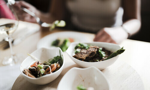 - Wir bieten auch eine Auswahl an vegetarischen und auch veganen Gerichten an.