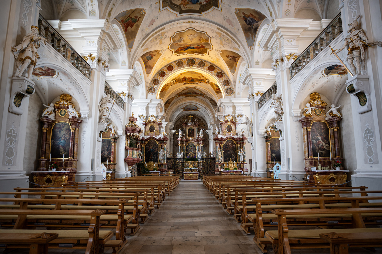Weiße Wände mit vielen goldenen Verzierungen und ein prunkvoller Altar mach bei den Besuchern des Klosters in St. Peter durchaus Eindruck.