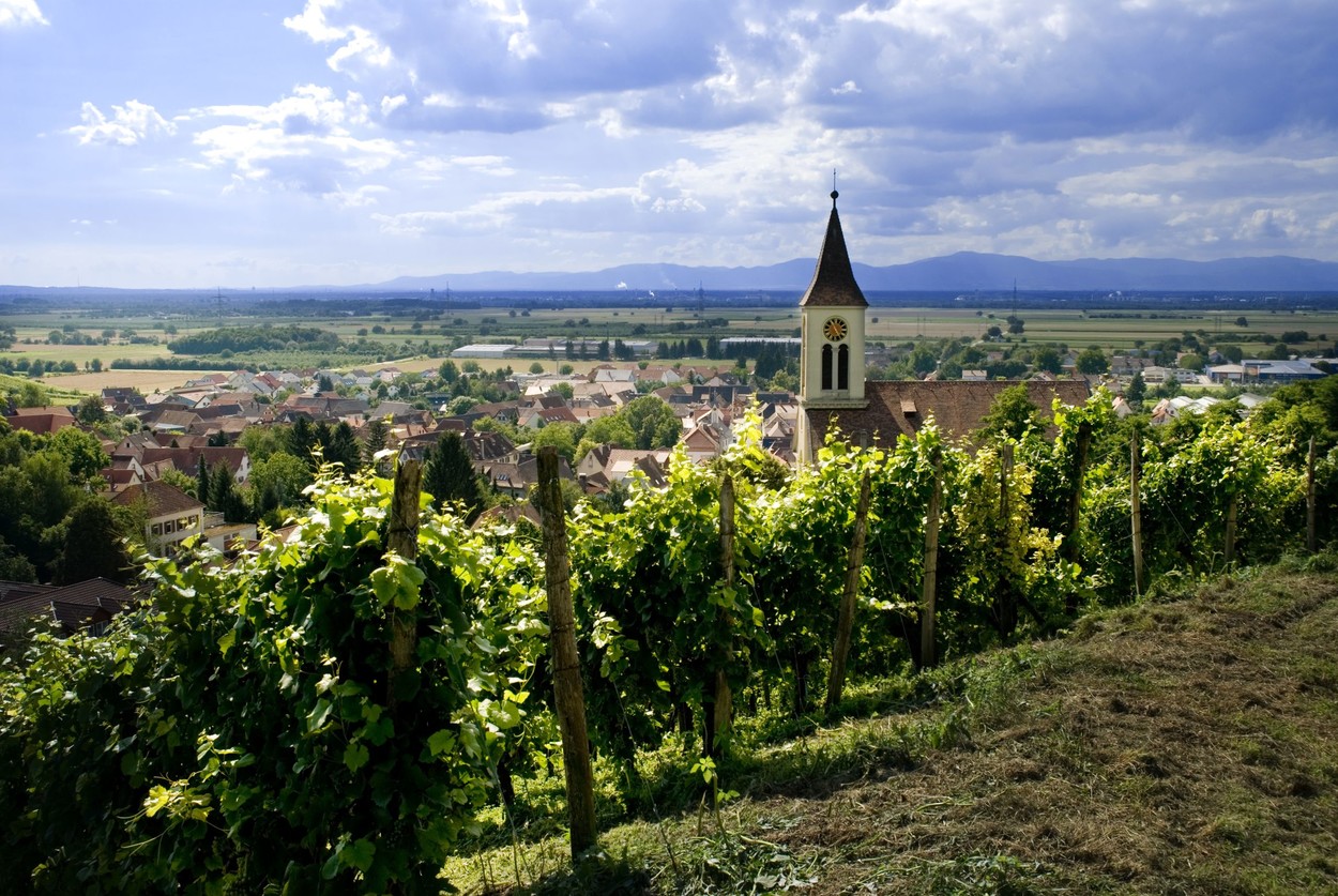 Im Herzen des Markgräflerlandes zwischen Freiburg und Basel liegt das Weindorf und Erholungsort Auggen, umgeben von idyllischer Landschaft.