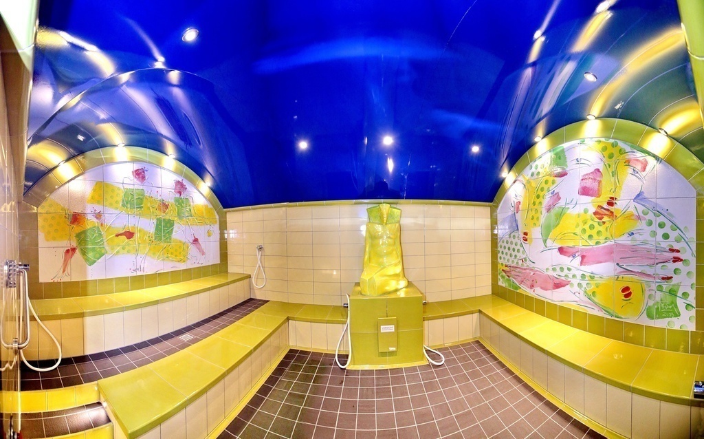 - Saunalandschaft (große und kleine Aufguss-Sauna, Dampfbad, Außensauna, Tepidarium, Vitarium)