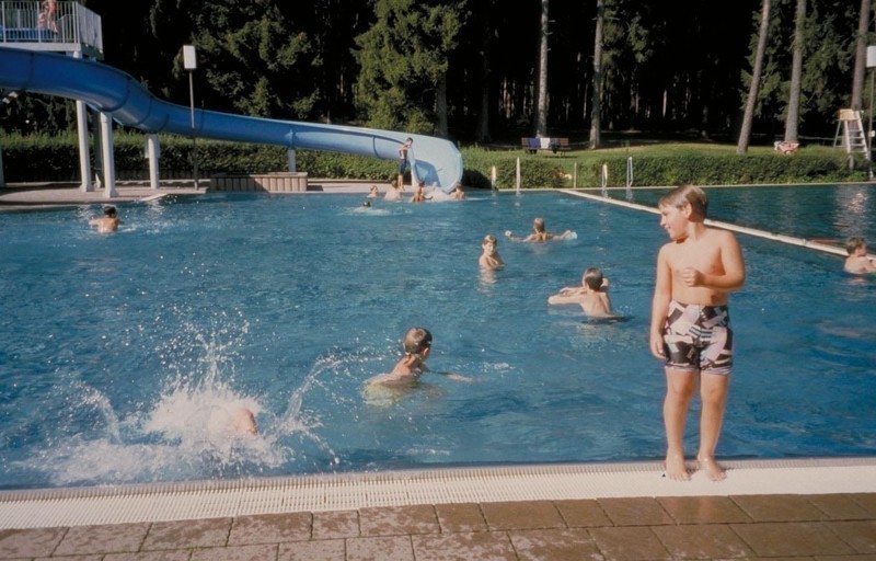 Beheiztes Freibad mit 41 Meter langen Wasserrutsche, Schwimmerbecken und Kinderplanschbecken. Die schöne Lage am Waldrand bietet ein idyllisches Badevergnügen für die gesamte Familie. Spielplatz, Beachvolleyballplatz und Terrassencafé sind ebenfalls vorhanden.