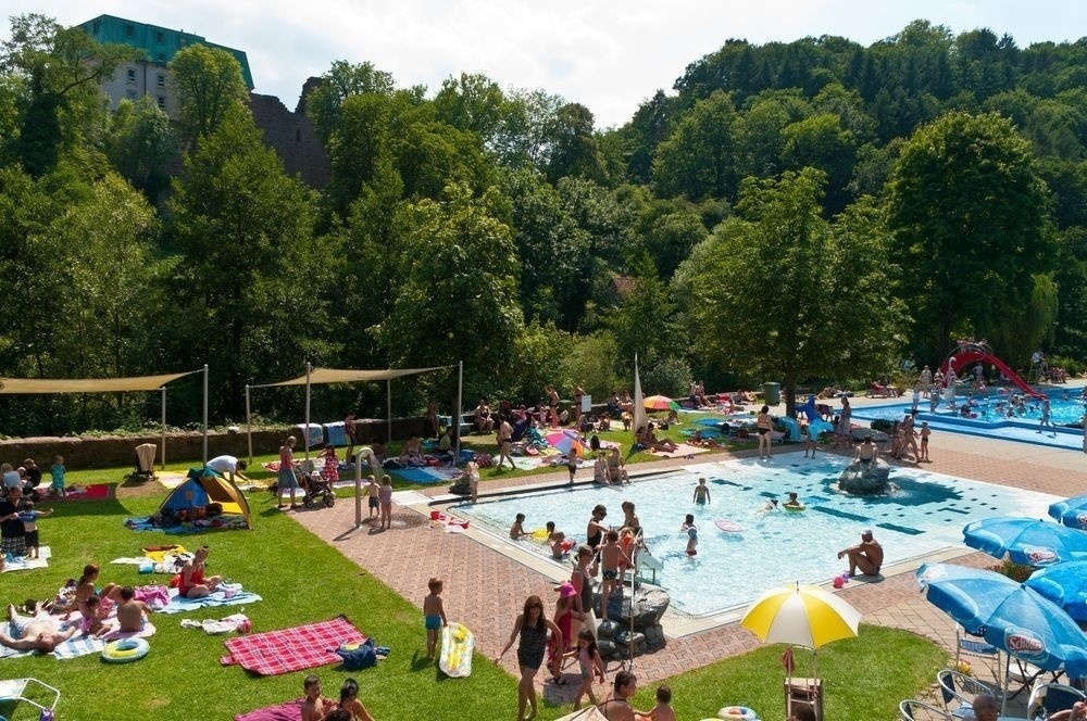 Direkt am Ufer der Nagold gelegenes Freibad mit 50m-Becken, Wasserrutschbahn, Schwall-und Massagedüsen, Kinderplanschbecken, Basketballfeld, Tischtennis und Kiosk.