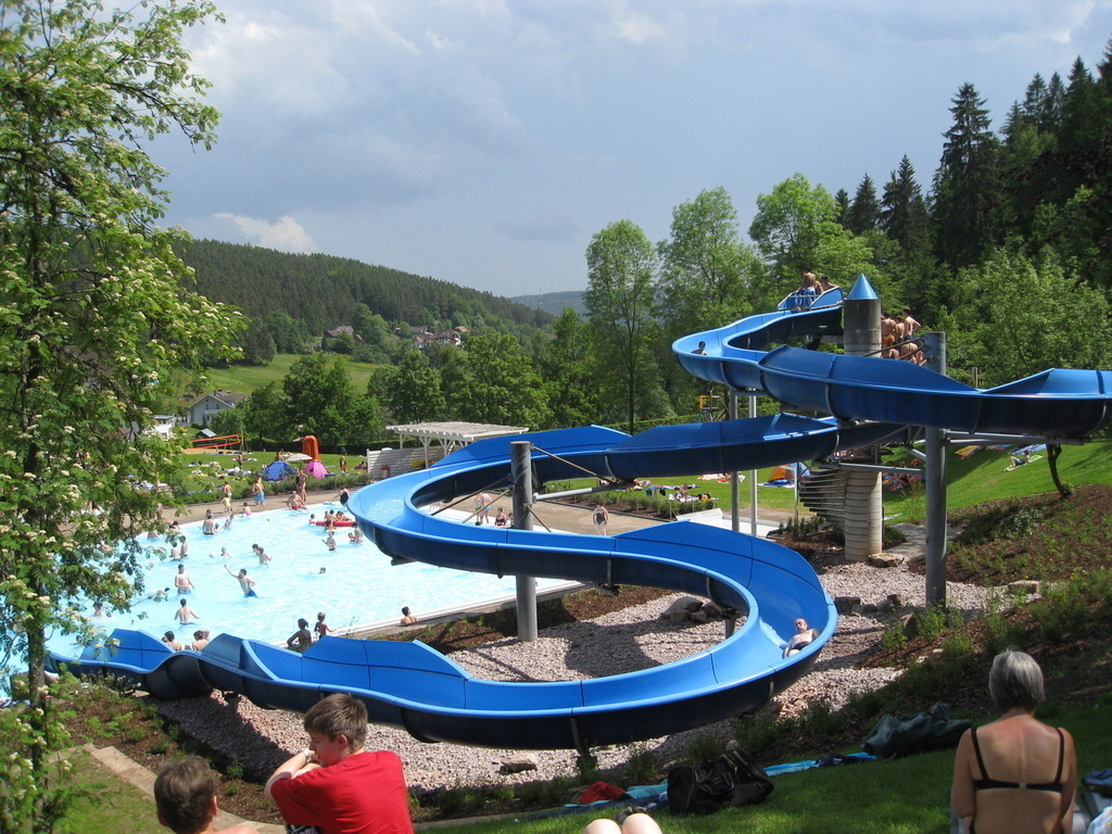 Besonders beliebt ist die 74 m lange Riesenrutsche. Die Liegewiese mit Beachvolleyballfeld, Kinderspielplatz, Piratenturm und beschatteten Sitzplätzen bietet eine Mischung aus Fun und Entspannung.