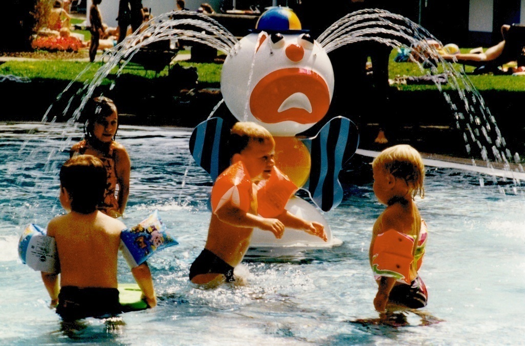Freibad mit modernder Badelandschaft.