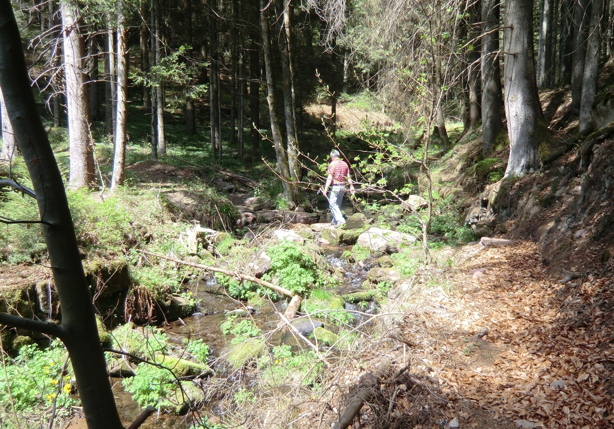 Geführte Wanderung vorbei an Bächen und auf schmalen schwindelfreien Wegen auf dem alpinen Pfad durch den Schwarzwald.