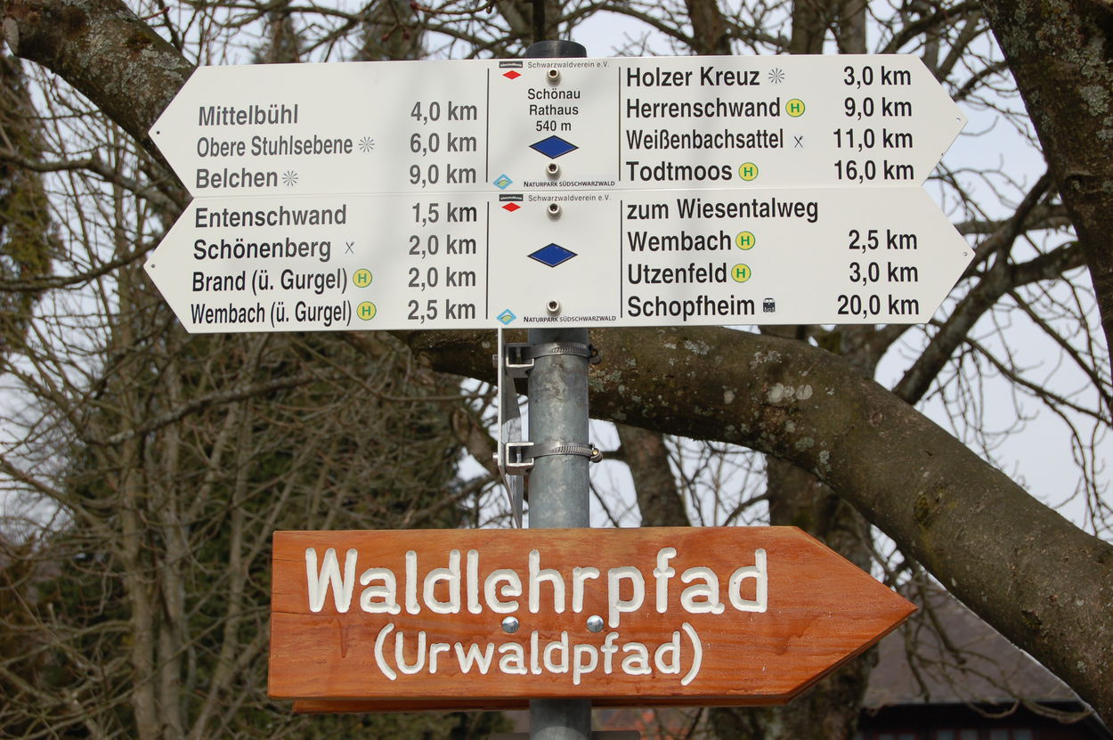 Los geht es in Schönau im Schwarzwald beim Rathaus an dem neuaufgestellten Hinweisschild Urwaldpfad (ausgeschildert ist er als Waldlehrpfad) über die Tunauerstraße Richtung Flüh. Der Urwaldpfad beginnt an der Wegkreuzung Flüh am Wiesentalrad- und Wanderweg in der Nähe von Schönau. Von dort führt er durch den unteren Abschnitts des Bannwaldes nach Künaberg. Über den oberen Weg von Künaberg Richtung Schönau geht es zurück zum Wiesentalweg.