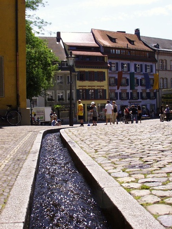 Südlich des Münsterplatzes findet sich einer der schönsten Plätze Freiburgs, der Augustinerplatz. Sanft über einen kleinen Hügel geschwungen, umgeben von Museen, Cafés und natürlich den Freiburger Bächle, ist er Seele und Ruhepol der Stadt. Bekannt ist der Platz auch für geselliges Zusammensein, insbesondere an lauen Sommerabenden, wenn sich jung und alt überall auf dem Pflaster niederlassen, um zusammen, das besondere, zauberhafte Ambietene zu genießen.Tipp - Augustinerplatz