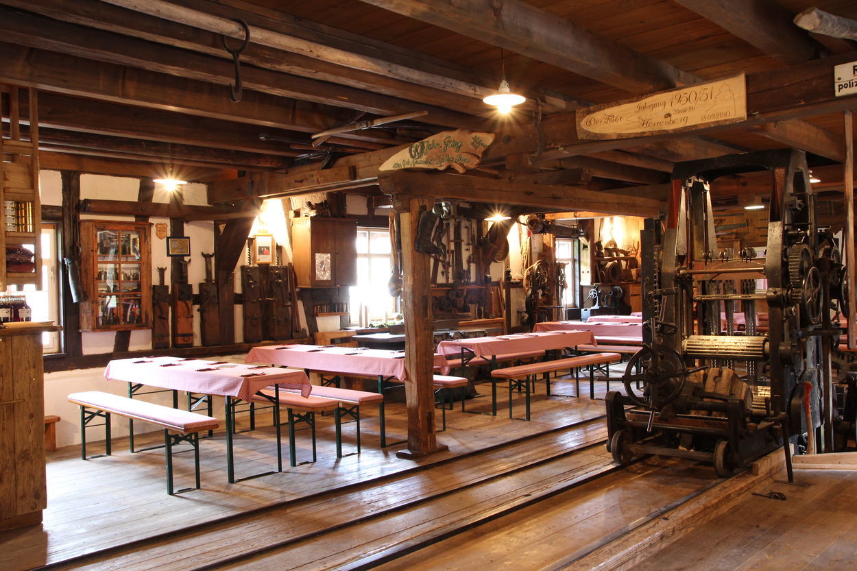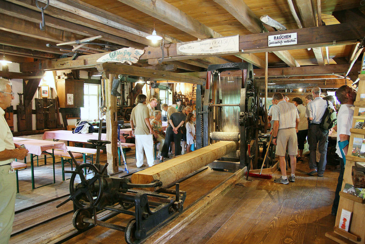 Mehrmals im Jahr finden Erlebnisführungen durch die alte Sägemühle statt, dabei können Sie die Säge in voller Aktion erleben. "Vom Baumstamm zum fertigen Brett", so heißen diese Touren.